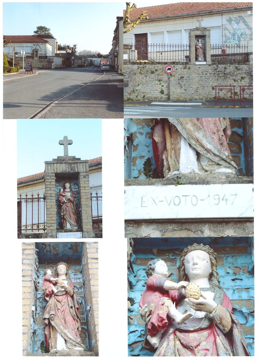 Description : En briques, avec une croix en pierre. Hauteur : 1m80 Largeur : 1m Profondeur : 0m70. Plaque en marbre portant la mention ‘’EX VOTO – 1947’’.