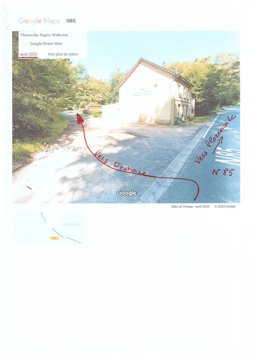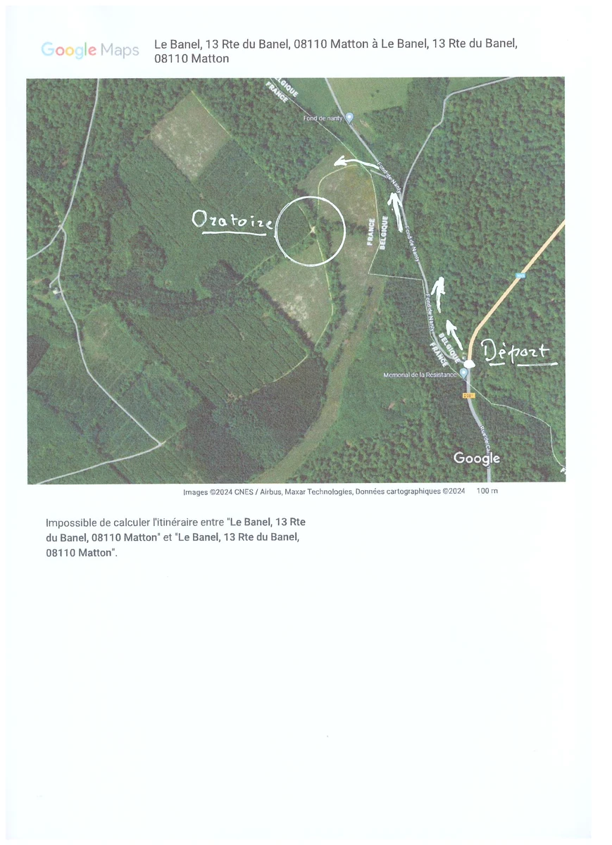 Localisation : De Tremblois-les-Carignan, suivre la D981 en direction fe Florenville. En chemin, on voit sur la gauche le Mémorial des héros du Banel et de la résistance Franco-Belge 1940-1945. Peu après, toujours sur la gauche, on voit le ‘’Gite du fond de Narcy’’. Prendre le chemin, carrossable, qui longe ce bâtiment sur la gauche, ceci sur une distance de 750m environ. En pleine forêt, à un embranchement, prendre le chemin de gauche sur 400m environ et qui conduit à l’oratoire situé à un carrefour de 4 chemins. Tas de gravier devant !… Un azalée de chaque côté.