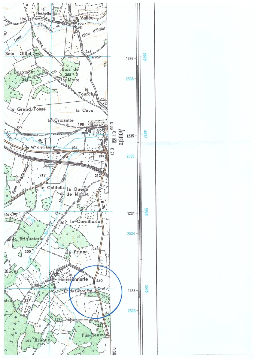Localisation : De Aouste, suivre plein sud la D36, à son croisement avec la D27, en direction de La Férée. A 1km700, sur la droite, route vers la Hérissonnerie (Petit panneau). Ne pas l’emprunter mais continuer tout droit sur la D36. La chapelle-oratoire se trouve à 300 mètres en bord de route, bien visible sur la droite.