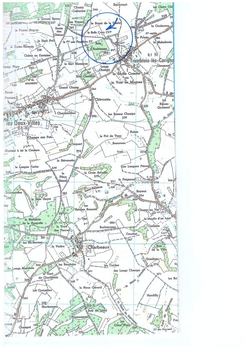 Localisation : De Carignan, prendre la D981 en direction des Deux-Villes (Basse et Haute). Continuer jusqu’à Tremblois-les-Carignan. A l’entrée du village, prendre à gauche la rue de la Belle Croix qui conduit au cimetière. Là, prendre à gauche un petit chemin carrossable. L’oratoire se trouve sur la droite, à 250 mètres.